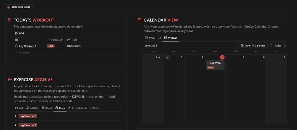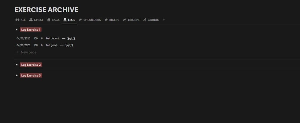 A simple, easy-to-use, and aesthetic workout log in Notion! This template enables you to log exercises, sets, repetitions, weight and more with just a few button presses. The template has been created to both be user friendly and aesthetically pleasing.