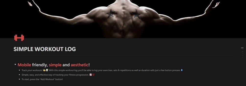 SIMPLE & AESTHETIC WORKOUT LOG IN NOTION