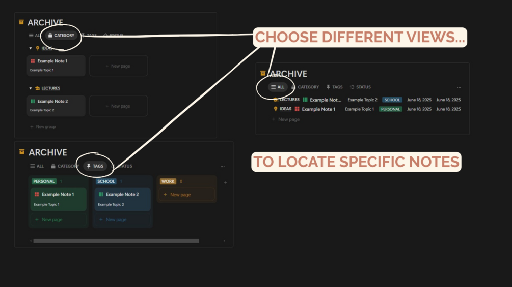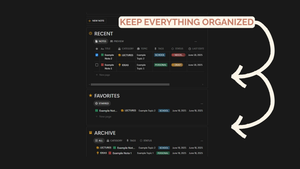 Whether you're a student, creator, or productivity enthusiast, this template gives you a clean, category-based system to manage all your notes β€” without the clutter.